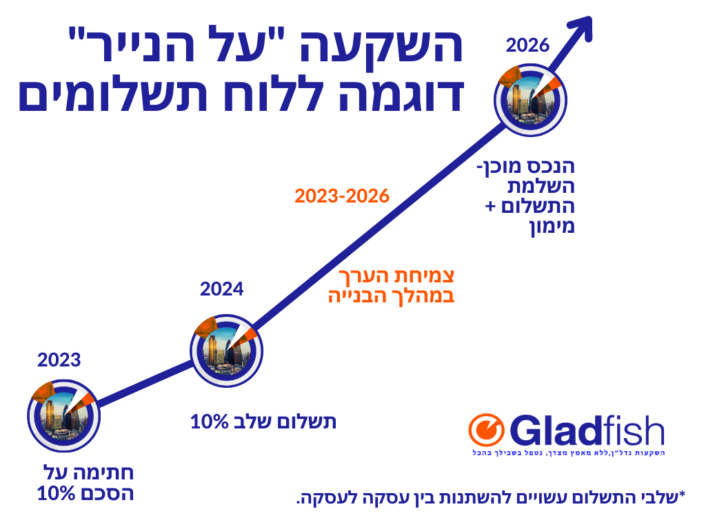קניית נכס על הנייר מעניקה יתרון נוסף, היכולת להיכנס להשקעה בשלב הראשוני עם הפקדה ראשונית של 10%-20% מהשקעה הנדרשת