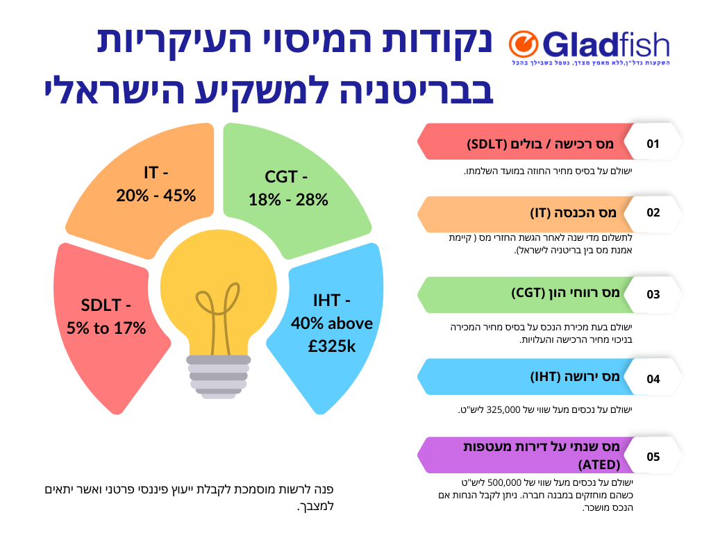 אז בואו נסתכל על המסים העיקריים המשפיעים על משקיעים בבריטניה